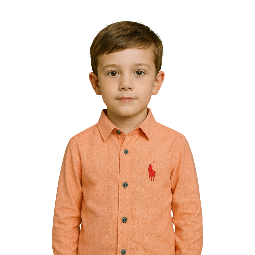 Give your little one a stylish and comfortable look with this Kids Peach Polo Dress Shirt, designed especially for 2-year and 4-year-old boys and girls. Made from soft, breathable fabric, this premium-quality shirt offers all-day comfort with a smart and elegant appearance. The embroidered Polo logo, high-quality stitching, and premium buttons make it perfect for parents who want both durability and style in their child’s outfit.