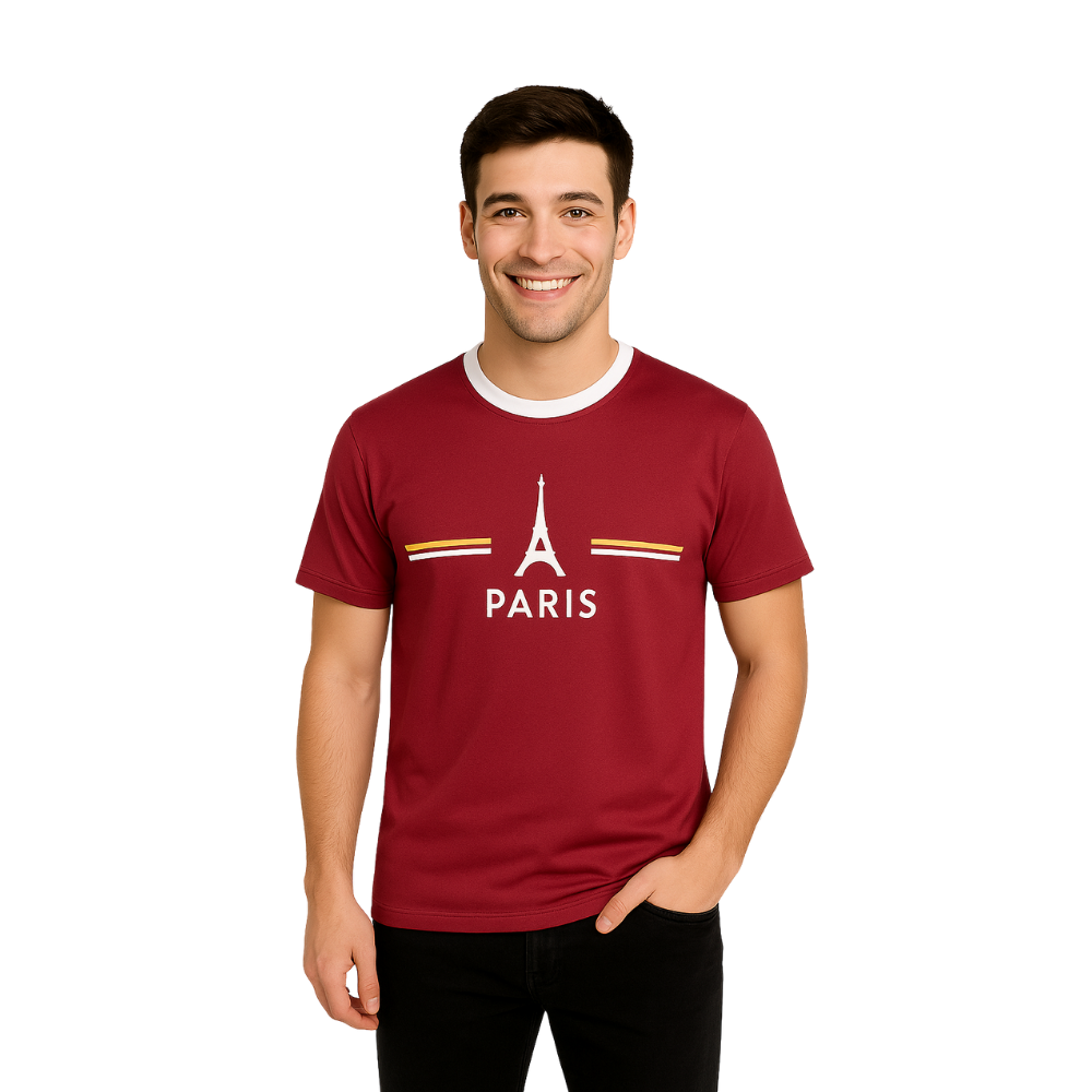 Add a touch of European style to your wardrobe with this Paris-themed premium T-shirt. Made from high-quality, breathable fabric, it offers exceptional comfort and durability. The maroon color with a white round neck gives it a stylish and modern look, while the Paris logo design adds a trendy touch that makes it perfect for casual outings or daily wear.