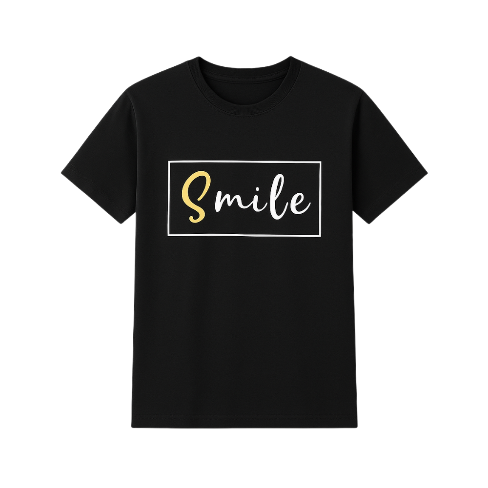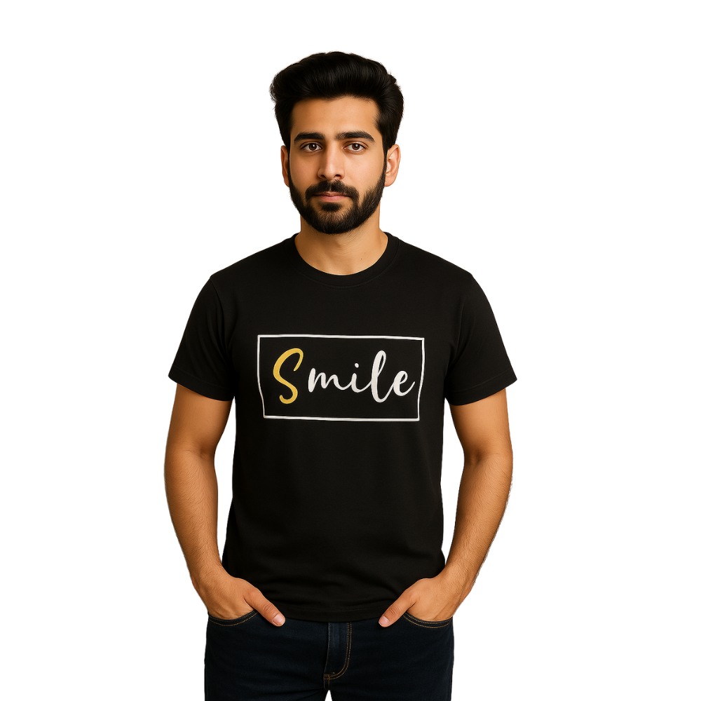 Upgrade your everyday look with this Smile Printed Black T-Shirt, designed with a clean, minimal, and modern graphic that brings positivity to your style. Made from soft, breathable cotton fabric, this T-shirt ensures all-day comfort while maintaining a premium feel. The bold black color paired with the stylish “Smile” print in white and yellow makes it perfect for casual outings, travel, college, and daily wear.